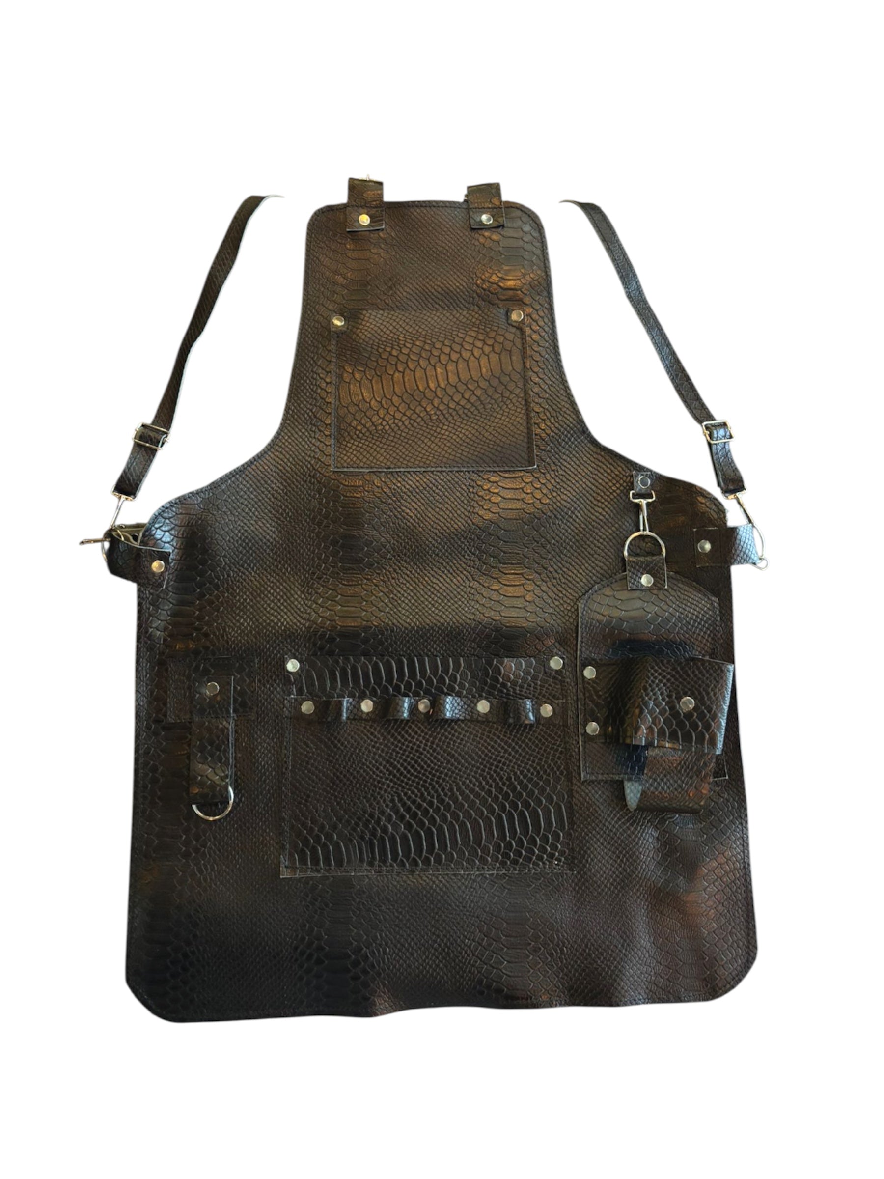 Grabado exclusivo tipo pitón: Cada mandil es único, con textura exótica y presencia salvaje.